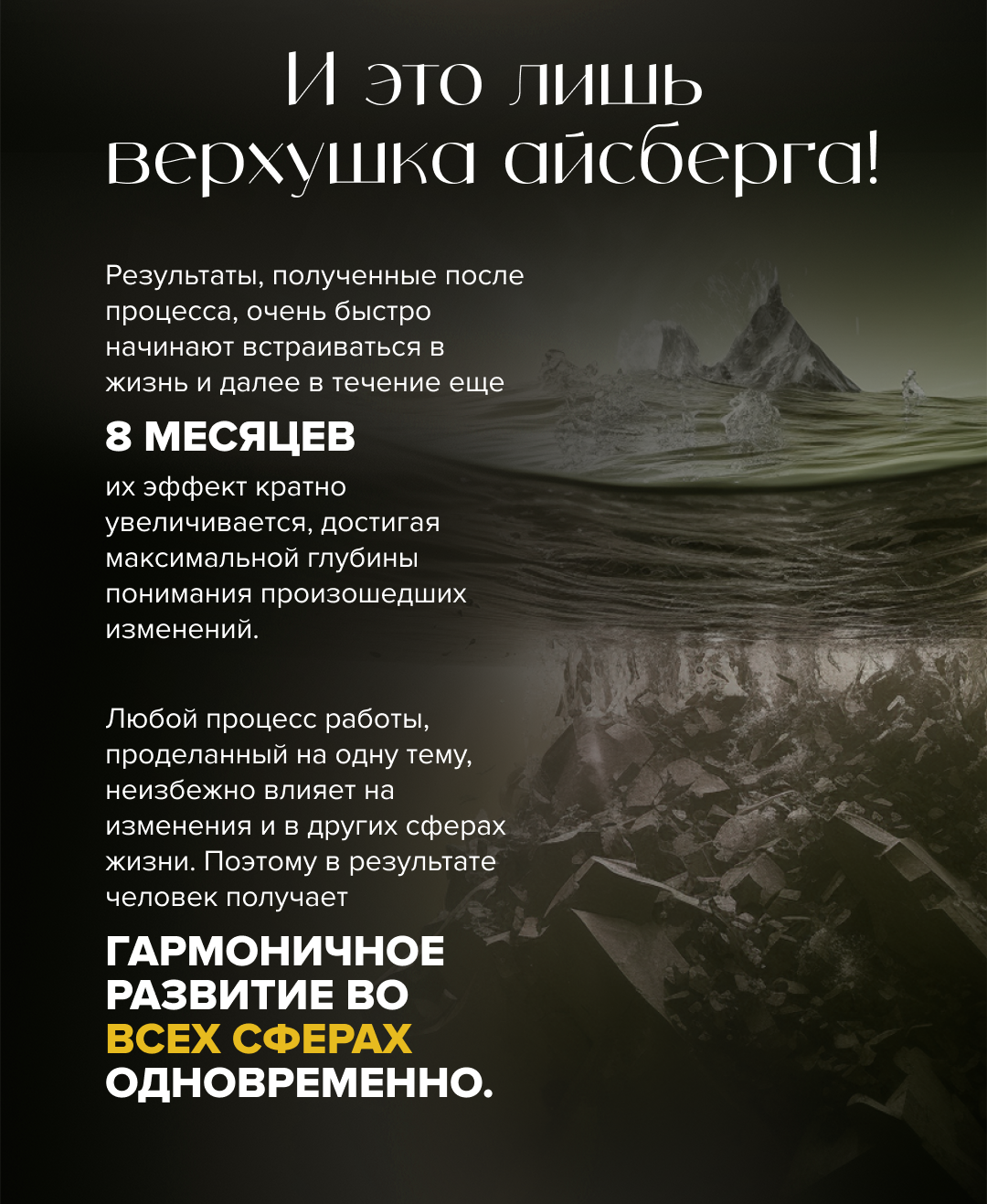 Результаты, полученные после процесса, очень быстро начинают встраиваться в жизнь и далее в течение еще